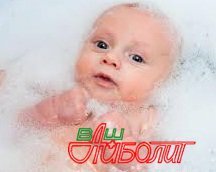Перед купанием разденьте ребенка, сделайте с ним гимнастику, погладьте животик и спинку, поговорите с ним, чтобы малыш чувствовал вашу заботу. После возьмите малыша, так чтобы он лежал на вашей левой руке, ладонью обхватите правое плечо ребенка так, чтобы его головка лежала у вас на предплечье. Если вам кто-то помогает, тогда будет удобнее, чтобы он держал одной рукой головку, а второй поясницу и попку. Постепенно окуните ребенка в водичку таким образом, чтобы головка находилась над поверхностью воды и если пуповина не зажила, ее тоже желательно не мочить. Далее аккуратно смочите тело ребенка водичкой, в одной руке намылите средство для купания и моющими движениями нанесите на тело ребенка, после помойте головку. Смойте мыльную пену водичкой из ванночки или, если пожелаете, можете смыть простой чистой кипяченой водой температуры 37 градусов. Лицо промойте рукой без мыла, чтобы вода не попала в глаза, рот и нос ребенка. Дальше вытяните ребенка из воды и заверните в пеленку или полотенце. Вытирать кожу нельзя! Просушите ее промокнув чистой пеленкой, в которую вы завернули малыша. С особой внимательностью промокайте складочки, чтобы в них не осталась влага. После того как кожа ребенка будет сухой обработайте ее маслом для кожи ребенка разотрите кожу и места складок. Перед одеванием нанесите крем под памперс. Подождите, пока масло немного впитается, и можете одевать ребенка. Также в это время почистите носик и ушки.