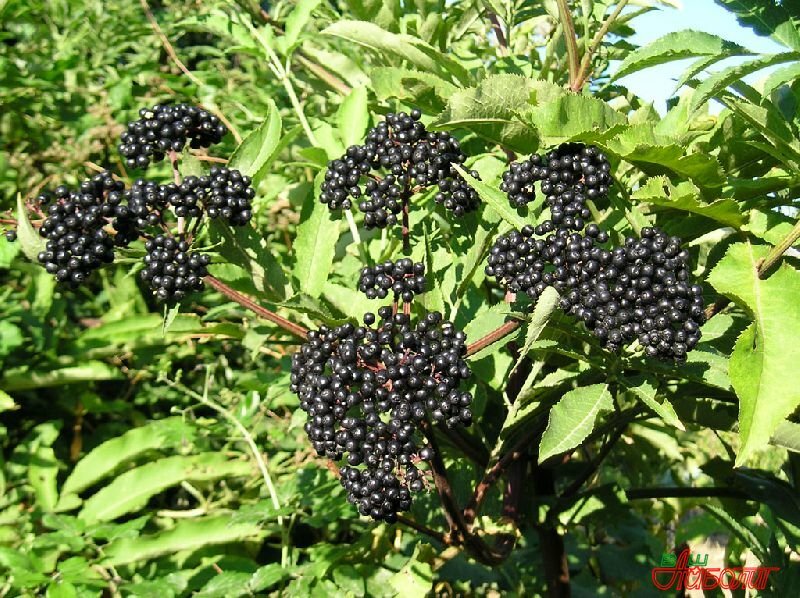 Бузина чёрная, самбук (Sambucus nigra) – это высокий кустарник или низкорослое дерево с мелкими цветками светло-кремовой окраски, плоды округлой формы фиолетово-чёрного цвета, листья мелкие имеют зубчатые края и отличаются довольно неприятным запахом; в качестве лекарственного сырья применяются цветки, листья, молодые ветви, плоды, зерна, кора и корни.