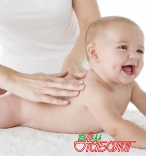 Положите малыша на живот. Избегая области позвоночника и похлопывания в области почек, делайте движение руками от ягодиц к шее.