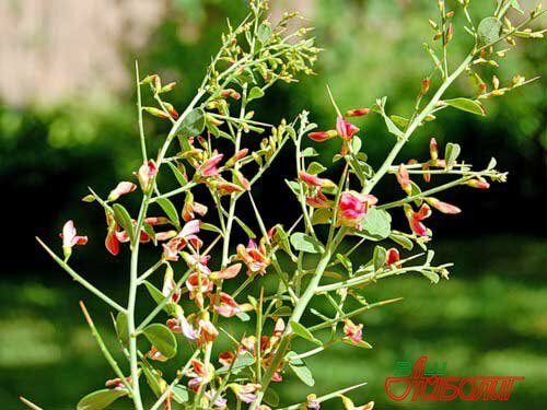 Растение обладает плодом – бобами, которые могут быть либо четырехсемянные, либо пятисемянные с 4 или 5 почковидными ростками, можно сказать, квадратной формы. В мае-августе верблюжья колючка расцветает.