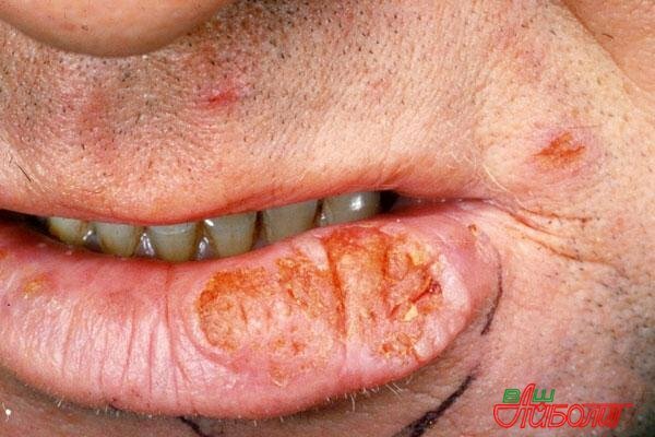 Рак губы, обычно поражает мужчин старшего возраста и представляет собой злокачественную опухоль, образованную из плоского эпителия на нижней и верхней губе. Особенно часто рак губы возникает у мужчин от 60 до 70 лет, но иногда рак губы может быть и у молодых людей.