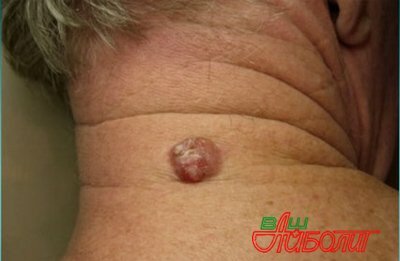 Злокачественная опухоль, локализующаяся на кожном покрове человека, развивающаяся из базального слоя, называется базалиомой кожи (базальноклеточный рак). Для базалиомы кожи характерен медленный рост и отсутствие метастазов. Базалиома выглядит как шелушащееся пятно розового цвета, чаще всего возникающего на лице, то есть, данная опухоль, по сути, является одиночным узелком, который возвышается над основной поверхностью кожного покрова. Чаще всего базальноклеточный рак возникает у светлокожих людей, кожа которых часто облучается солнечным светом, кроме того, заболевание чаще возникает у людей пожилого возраста. Если вы человек пенсионного возраста, любите проводить много времени на солнце (например, работая в огороде), имеете светлую кожу - вы в группе риска и информация на тему базалиома кожи симптомы и лечение может быть очень полезной.