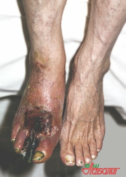 Гангрена ноги, которая не связана с обморожением, ожогом или каким либо другим травматическим повреждением, как правило, возникает из-за снижения либо прекращения тока крови по артериям нижних конечностей. Данное нарушение, в большинстве случаев, происходит у больных атеросклерозом, сахарным диабетом, а также у курильщиков со стажем. В основном эти два заболевания сопутствуют друг другу.